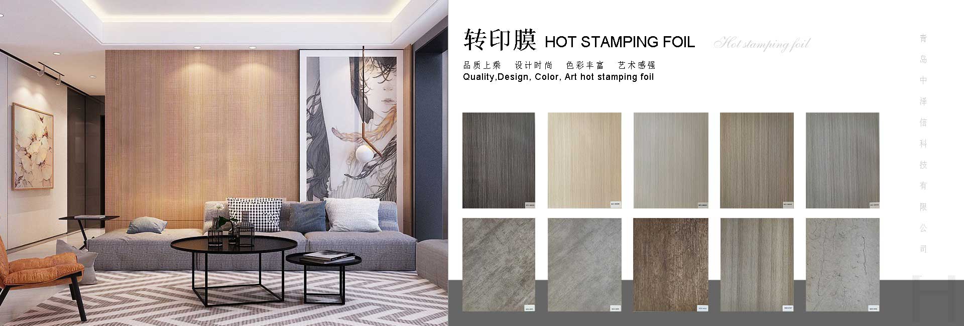 青島中澤信科技有限公司地處中國山東省青島市,致力于多種裝飾膜的研發和生產,所生產的熱轉印膜和包覆膜廣泛應用于多種家裝材料如建材、家具、裝飾框等。本公司擁有60多名專業工人,10000平米標準廠房,20年印刷行業經驗,15年熱轉印行業經驗,配備8套8色印刷生產線,采用韓國技術以及環保級原材料具備,ISO認證。工廠距離青島國際機場和青島港不足一小時車距這些都是我公司能為全球客戶提供高質量產品以及維持良好合作的重要因素。